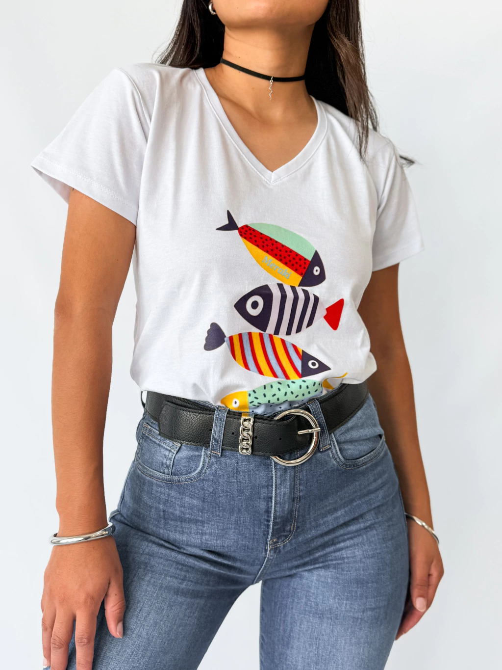 Remera de algodon super comoda y fresca con estampas originales, con los colores mas top de la temporada! Ideal para complementar ese outfit con tu short o jean favorito.